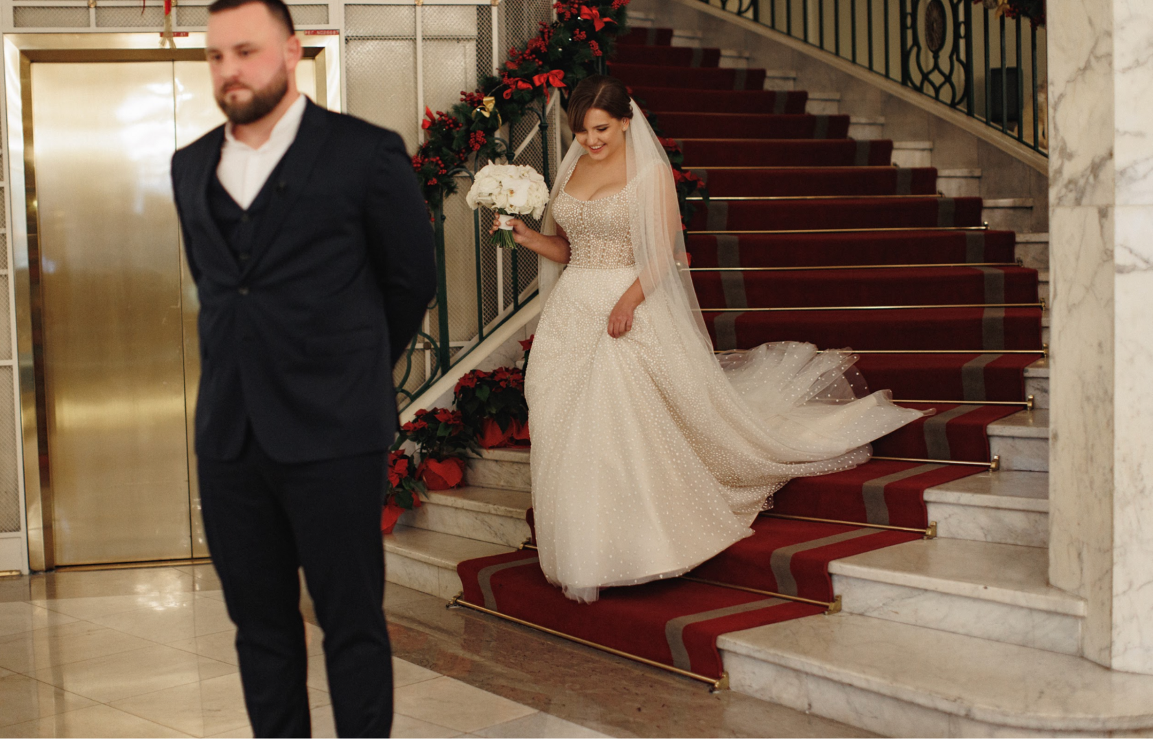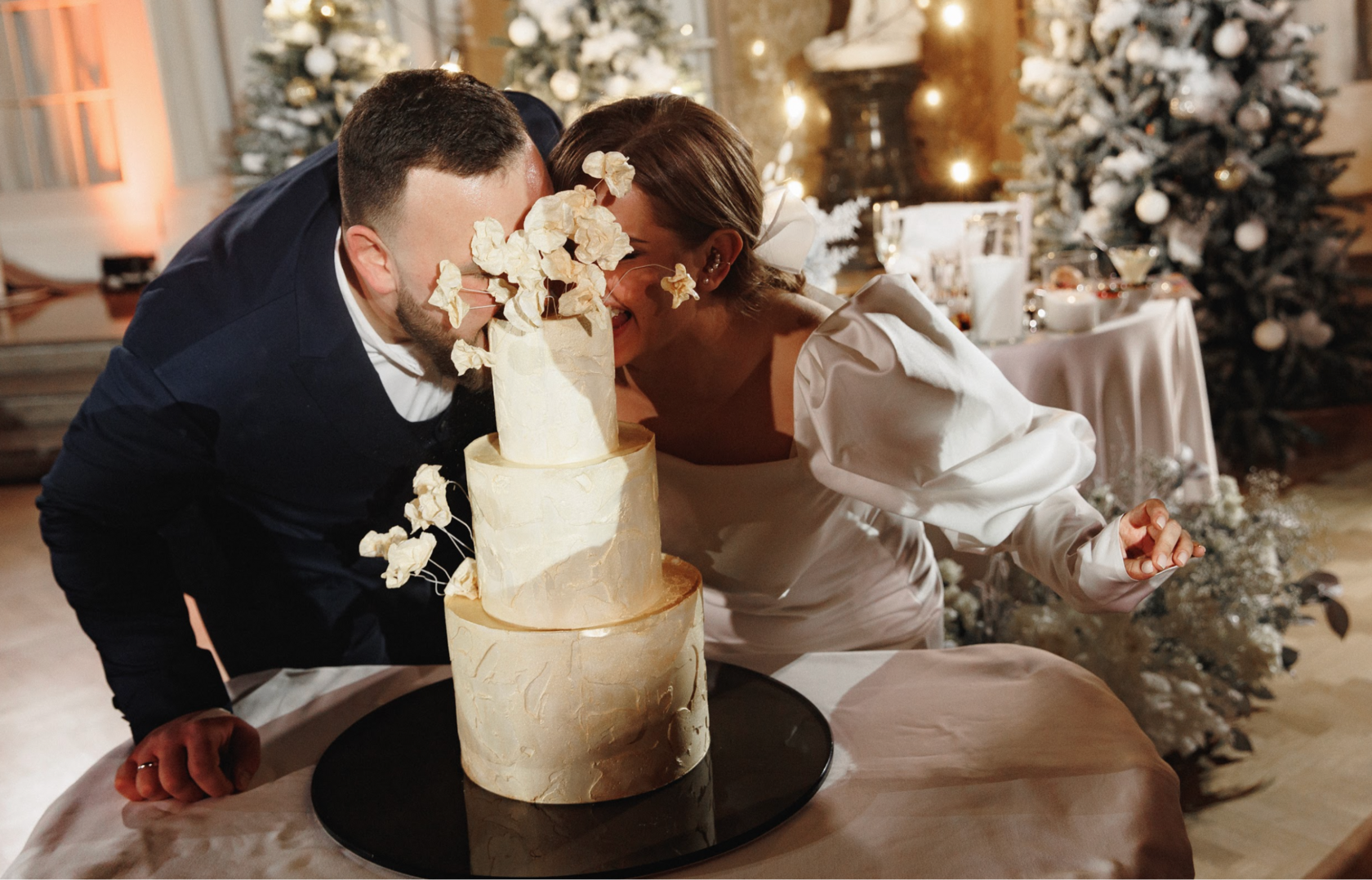 Подготовка к свадьбе Маши и Вани стала настоящим волшебством, воплотившим в жизнь детскую мечту невесты. Маша, с ее богатым опытом в свадебной организации, была полна идей, и наша команда быстро сработалась с ней. Совместные обсуждения проходили в уютной атмосфере, где каждая деталь принимала форму настоящего произведения искусства. Мы выбирали идеальные цветовые схемы, украшения и, конечно, разрабатывали концепцию, которая сделала бы этот день уникальным и запоминающимся. Свадьба в декабре стала настоящей зимней сказкой, в которой каждая деталь мастерски подчеркивала неповторимость и красоту их любви. Церемония регистрации проходила в одном из самых красивых дворцов на Английской набережной.