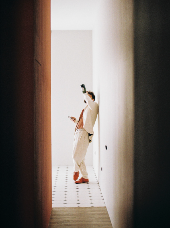Идеально подошла просторная квартира ребят в самом центре Петербурга. Пока Майю собирали в одной из комнат, Макар в это время дописывал свою свадебную клятву на подоконнике кухни.