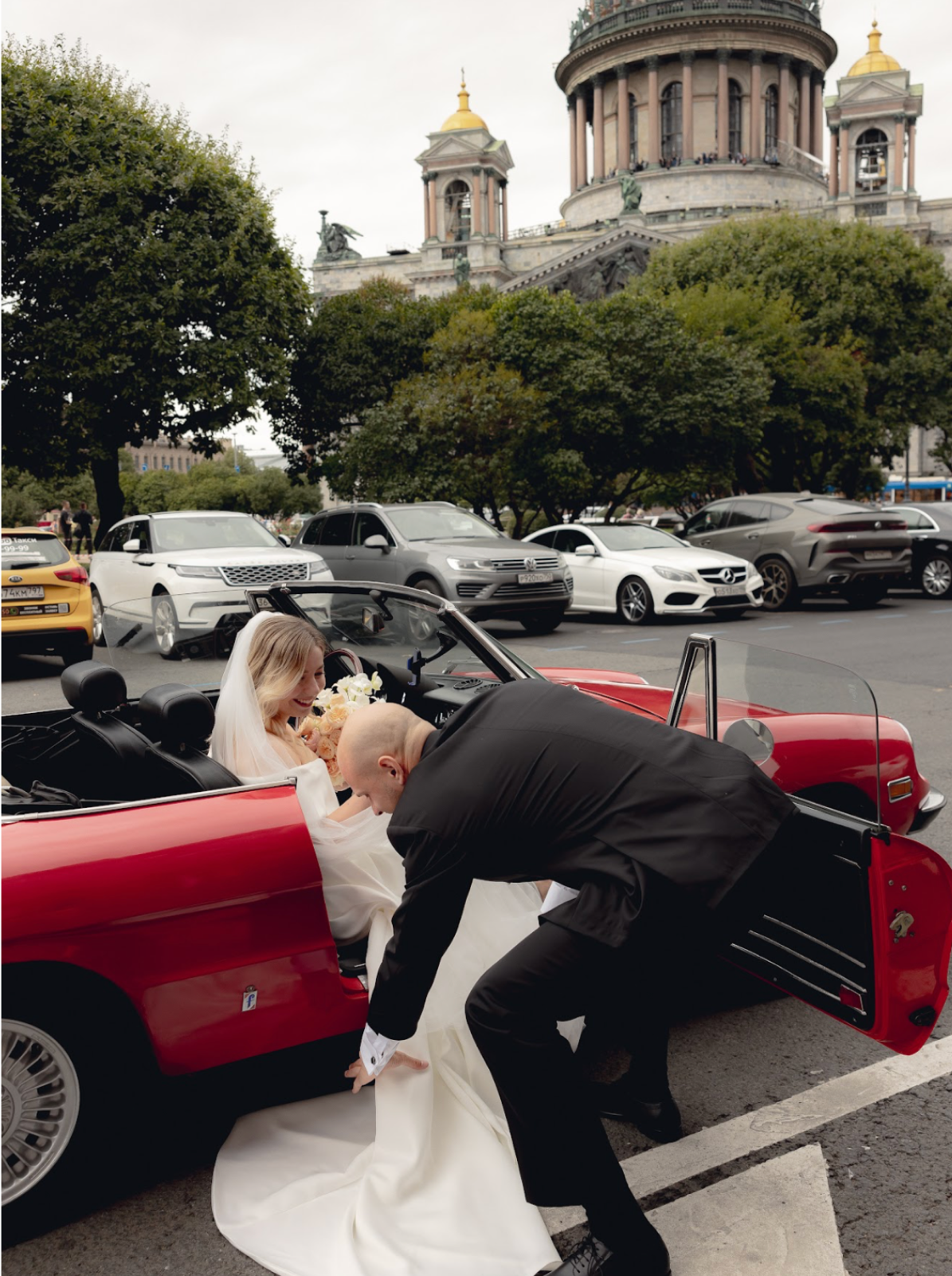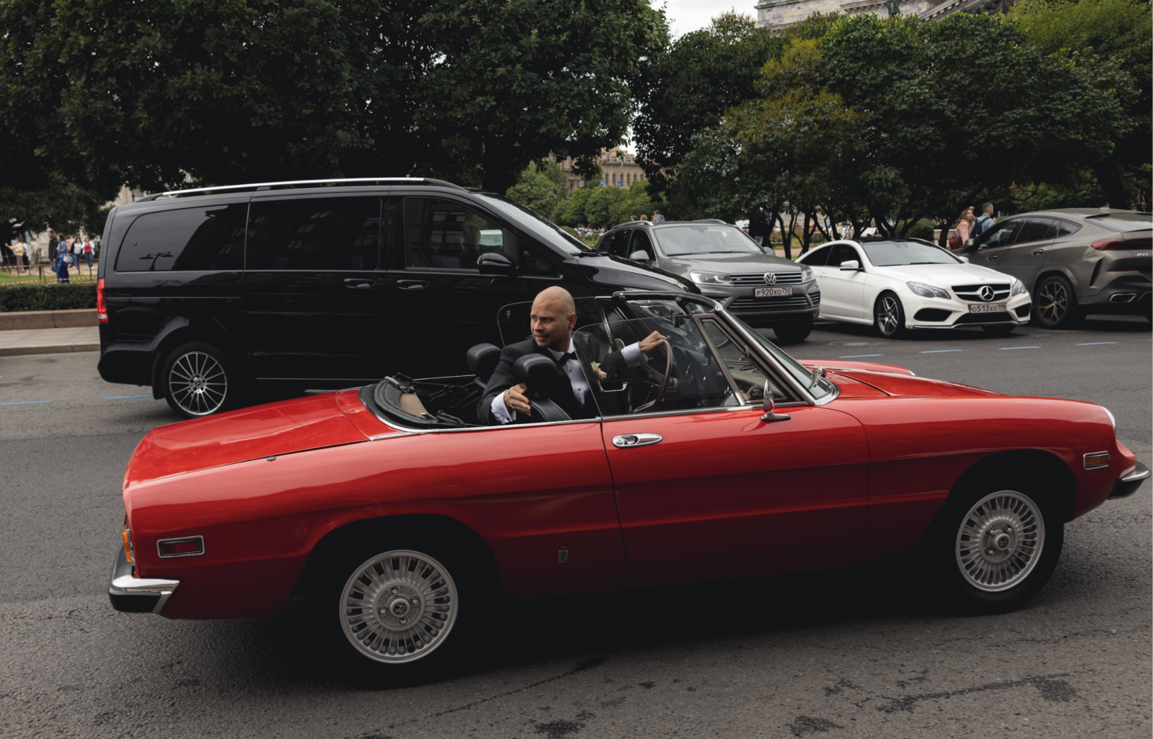 Подготовка к свадьбе Наты и Феди была настоящим путешествием в мир итальянского романтизма, несмотря на расстояние в сотни километров. Пара, находясь в Москве, мечтала о том, чтобы каждый элемент их торжества был пронизан духом Италии. Мы с вдохновением начали разрабатывать концепцию, которая перенесла бы атмосферу солнечных улиц Тосканы в сердце Санкт-Петербурга. Идея эвакуировать автомобиль Alfa Romeo 1978 года из Москвы была не просто капризом — это был настоящий символ их любви, который должен был стать центром внимания на этом волшебном дне.